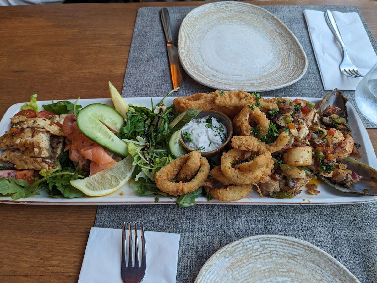 The Seafood Platter is a crowd favorite, and honestly, it lives up to the hype. It’s fresh, generous, and packed with flavor. For meat lovers, the Fillet Mignon is a tender, juicy must-try, while the Lamb Loin brings bold, earthy notes that feel right at home in this Mediterranean-inspired setting. Looking for something lighter? The Patatas Bravas and Fried Green Peppers are excellent starters-crispy, well-seasoned, and perfect with a cocktail in hand.
